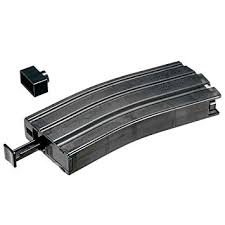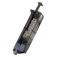 Con funzionamento a "siringa" che tramite uno stantuffo spinge i pallini contenuti nel serbatoio all'interno del caricatore.